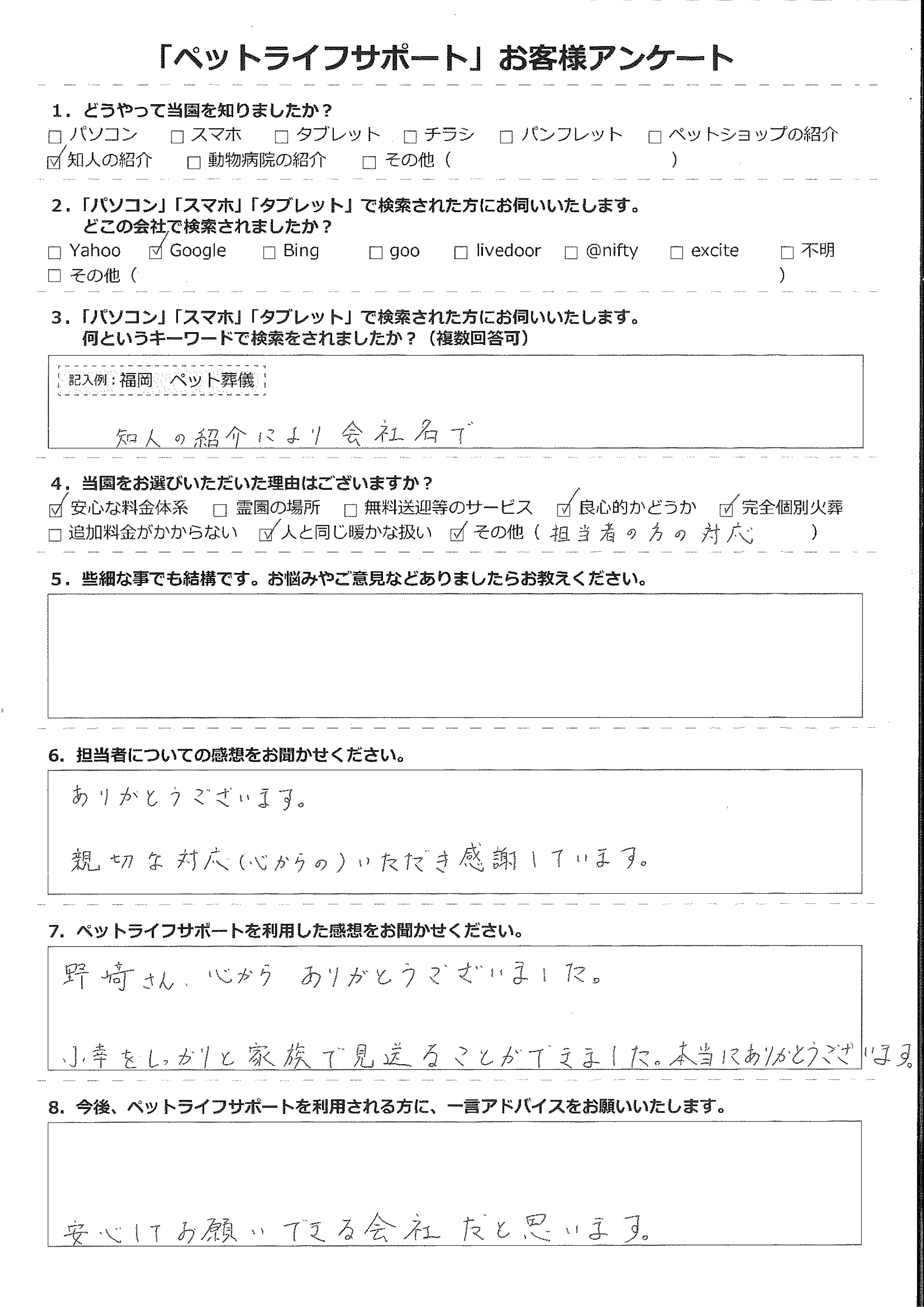 ペットちゃんのご葬儀を執り行わせていただいた飼い主様へ、